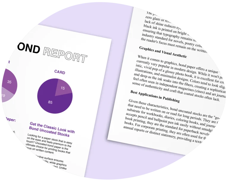 Forever dependable, uncoated stocks work perfectly with all our binding styles—including saddle-stitched, perfect-bound, wire and spiral bound, in softcover, and hardcover books.